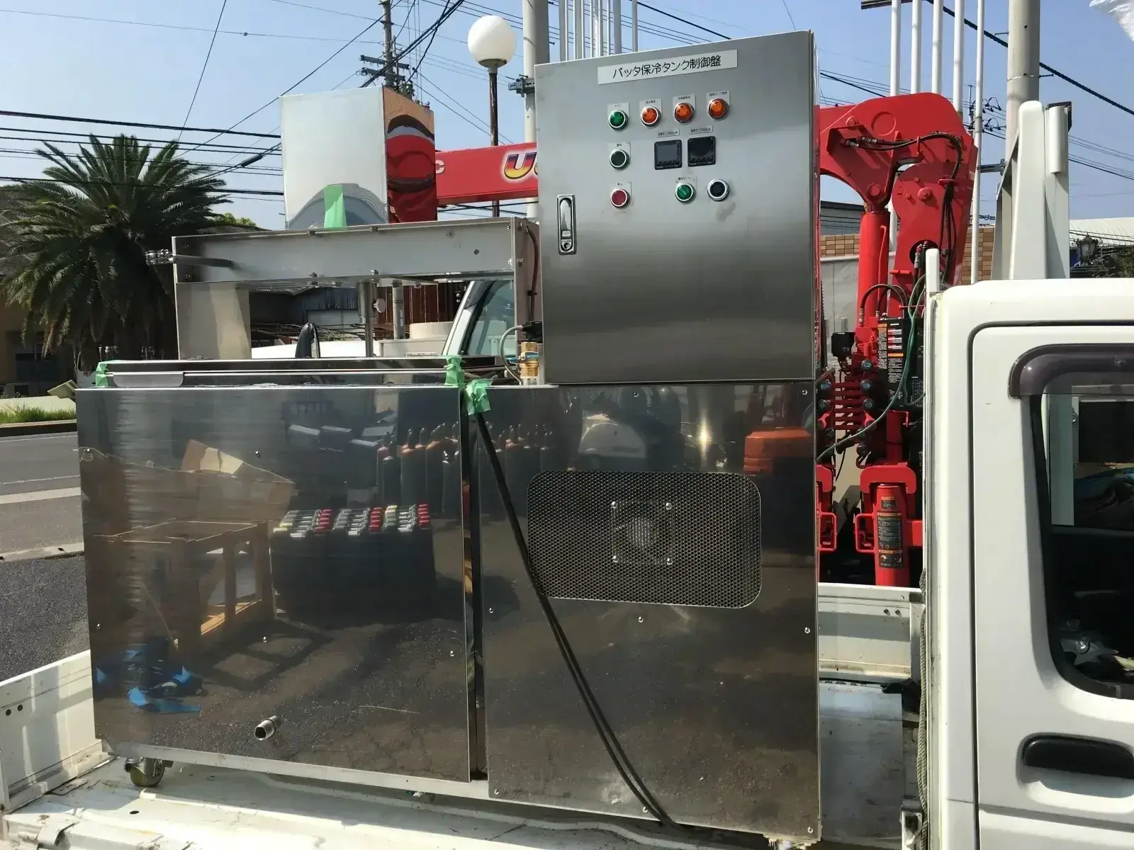 食品製造で使われる、移動式バッタ液体保冷装置の設計から製作、納品までを高岡冷機がトータルサポートいたします。ラインの組み替え時にも自由に移動して使用できる様に設計しています。お客様のニーズに応える高品質な設計・施工を提供いたします。